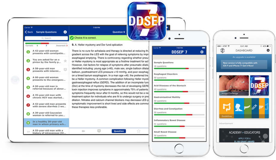 Assess and enhance your GI medical knowledge with this comprehensive collection of case-based questions. The app includes a total of 850 questions covering all major topics in the field of digestive diseases. Whether you’re preparing for the GI board exam, looking to assess your knowledge or keeping current on advances in the field, you can depend on DDSEP® 8 to meet your educational needs.