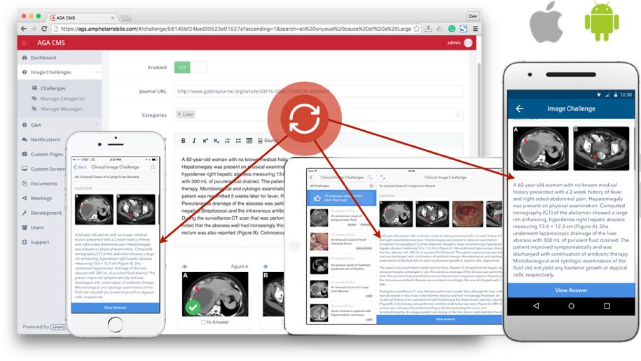Single CMS for Society app and all included modules. Admins can be granted different levels of access. Dynamic updates are automatically synchronized across all app platforms. The app updates and syncs activity seamlessly for end-users, they just need open the app while online, and the app remains fully functional while offline.