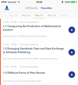 Attendees love fast native apps that update in real time, yet fully-functional offline to search, discover and organize their busy conference days. You'll love the ease of getting started and full control from the CMS.